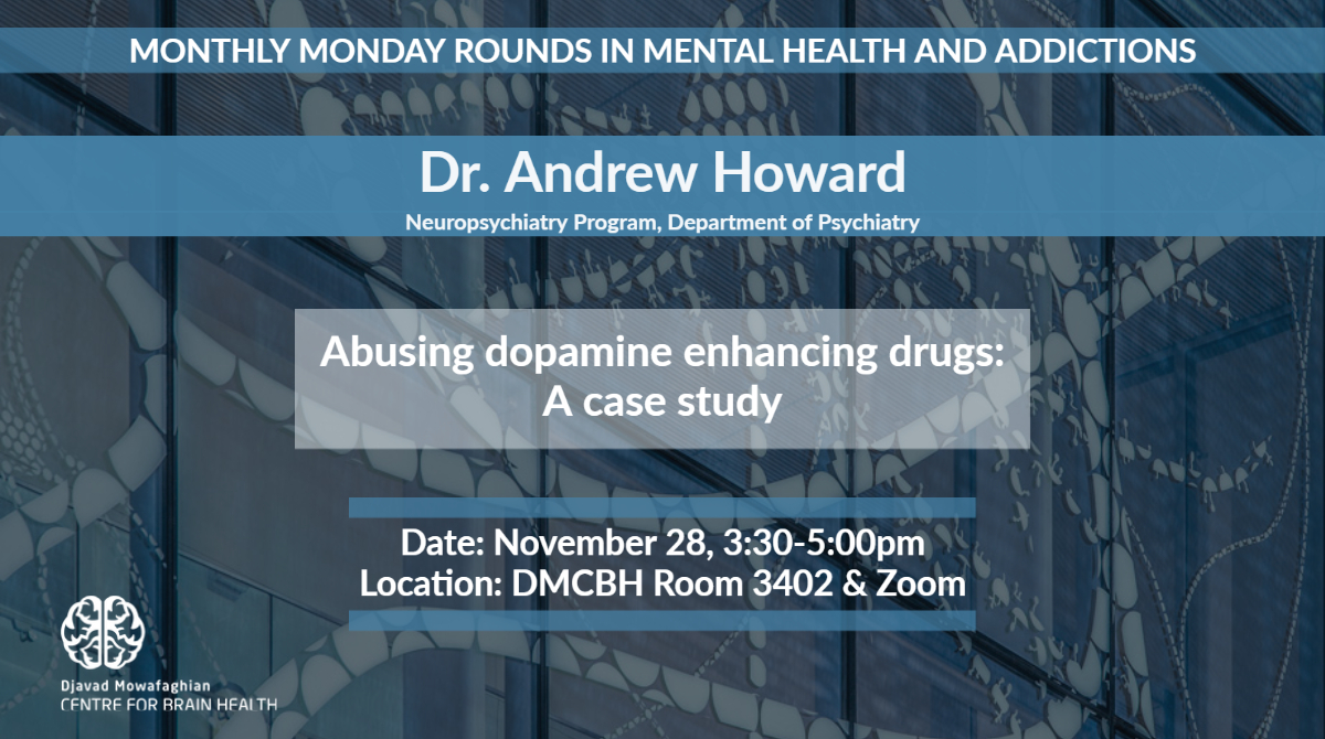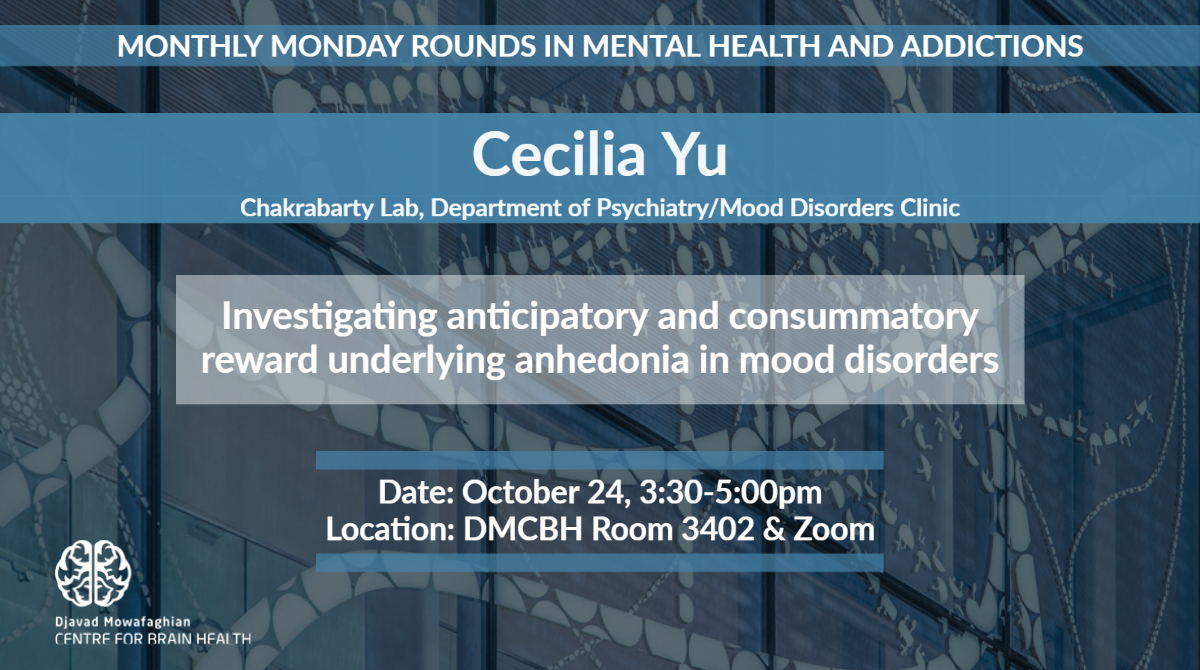 OnlineRyan Tomm and Brandon Forys from Rebecca Todd's lab will be presenting findings from a collaborative project between researchers in the Mental Health and Addictions integrated research program: "Linking animal models and mood disorder symptoms through cortico-striatally regulated avoidance and reward-seeking behaviour" Online via Zoom: Meeting ID: 574 796 6049 Passcode: 052059