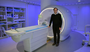 Pictured: Dr. Kozlowski with the Philips Elition 3T-MRI housed in the Charles E. Fipke Integrated...